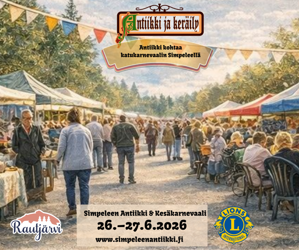Sosiaalinen media: Seuraa Simpeleen Antiikki ja Keräily Kesäpäiviä (@simpeleenantiikki) ja Lions Club Simpele (@lcsimpele) Instagramissa ja Facebookissa.